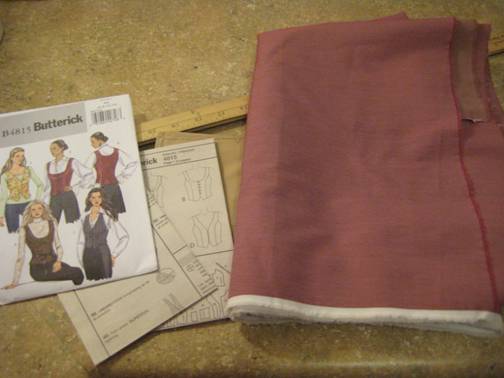The underlying structure of the bodice is based on this cotton poplin. It is a substantial enough fabric to support the other sections of the bodice as well as the eventual addition of the pauldrons. A low-cut ‘vest’ type pattern was used for similarity of shape.