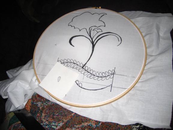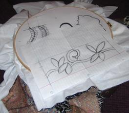 The bottom section of the bodice was made from a jersey knit and the fabric design was applied by heat appliqué.