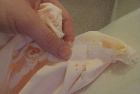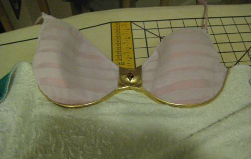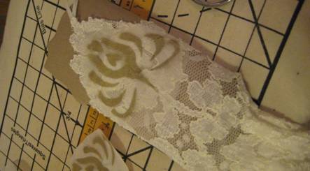 The cups of the bra were separated from the rest of the bra structure to be covered with pleated synthetic chiffon.