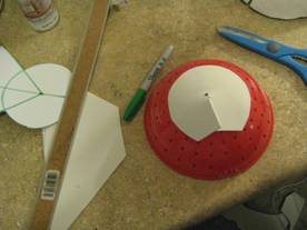I started with a half-sphere – in fact a small strainer from a dollar store. Fun foam – what I consider one of the most versatile and useful products on the market – was layered on top of the base piece by piece to account for the curve. Painters tape was used to cover the holes in the strainer to prevent the mold from picking them up.