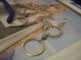 The earrings are silver-plated copper loops with a matching link of a miracle bead between, on silver-plate earwires.
