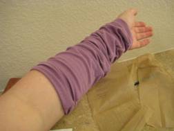 The purple arm warmers are bamboo jersey knit, simply serged to size.