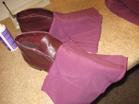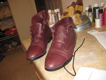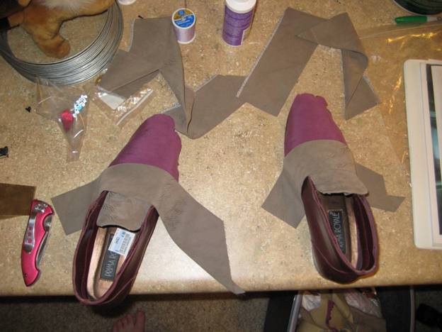 The base shoes were purchased secondhand in as similar a style as possible, disregarding the color as they would be covered. Excess material was removed.